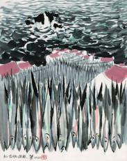 水乡哺育了我的童年,我画过水乡的方方面面,角角落落,画里流露了乡情,更体现了我对形式美的追求。“小桥流水人家”之所以诱人,是由于其结构完美:小桥——大弧线,流水——长长的细曲线,人家——黑与白的块面。块面、弧线与曲线的搭配组合,构成了多样变化的画面。画不尽江南人家,正是由于块面大小与曲线长短的对歌间谱出无穷的腔。